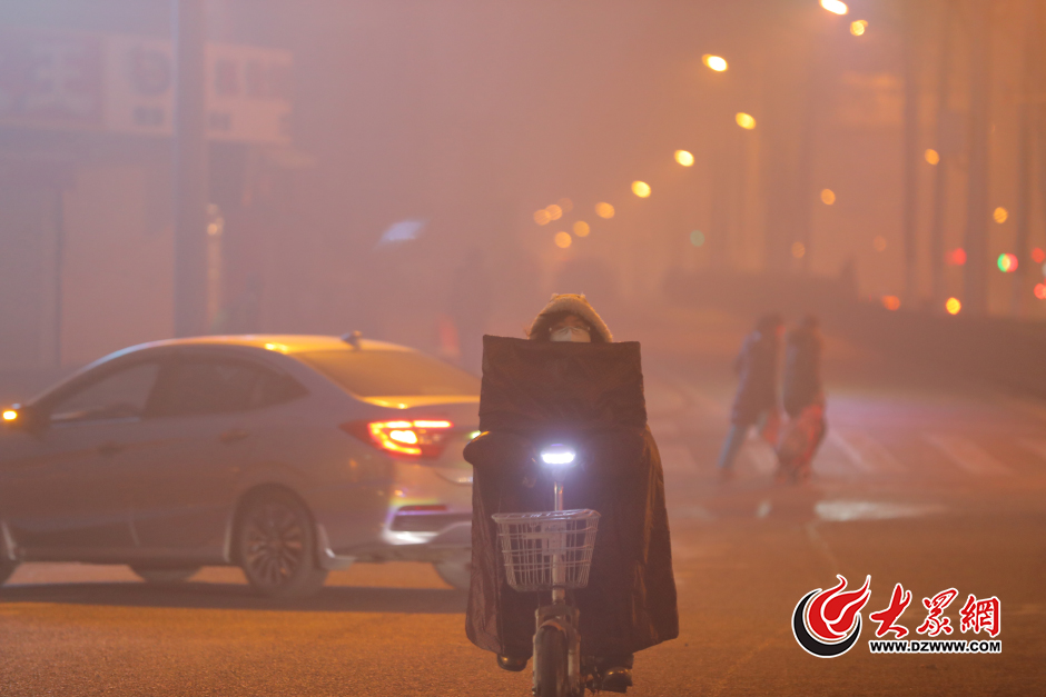 12月20日,山東濟南,市民在霧霾中出行。 根據山東城市空氣質量實時監測顯示,截至20日8:00,山東已有濟南、淄博、萊蕪、日照、臨沂、棗莊、濟寧、菏澤8市陷入嚴重污染水平,其中臨沂市AQI達到500爆表值,濟寧、棗莊突破400,分別為403和402;德州、聊城、泰安為重度污染,青島、煙臺、威海為中度污染,濱州、東營、濰坊為輕度污染。大眾網記者 王長坤 攝