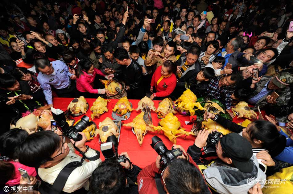 2017年02月11日,海南省瓊海市博鰲鎮樂城村,迎神賽肥雞吸引了大量的市民和游客。