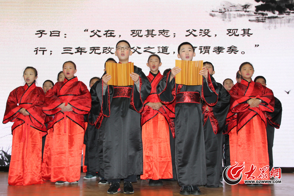 2月13日,中小學寒假結束,山東師大附小的學生們迎來別樣的開學第一課,80名小學生身穿漢服,托起雙手至與鼻尖齊平高度,集體向至圣先師孔子行禮,意在表示尊師重道,隨后一同誦讀《論語.學而篇》,接受傳統文化教育。大眾網記者 王長坤 實習生 孫明悅 攝