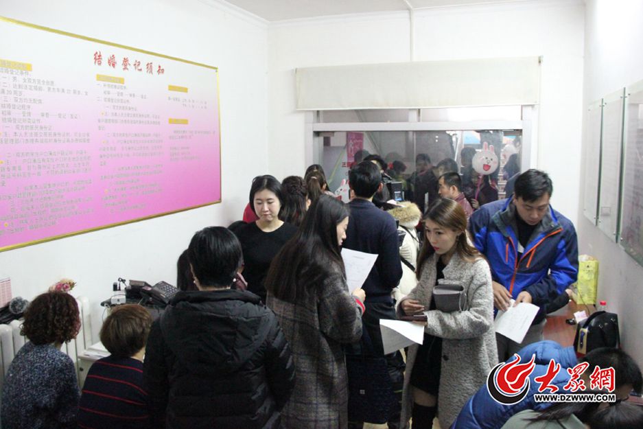 2月14日上午9點(diǎn),濟(jì)南市歷下區(qū)民政局大廳人頭攢動(dòng),前來登記領(lǐng)證的新人排起長(zhǎng)龍。很多來此登記的新人表示,比起玫瑰和巧克力,結(jié)婚證才是最好的情人節(jié)禮物。大眾網(wǎng)記者 王長(zhǎng)坤 實(shí)習(xí)生 孫明悅 攝