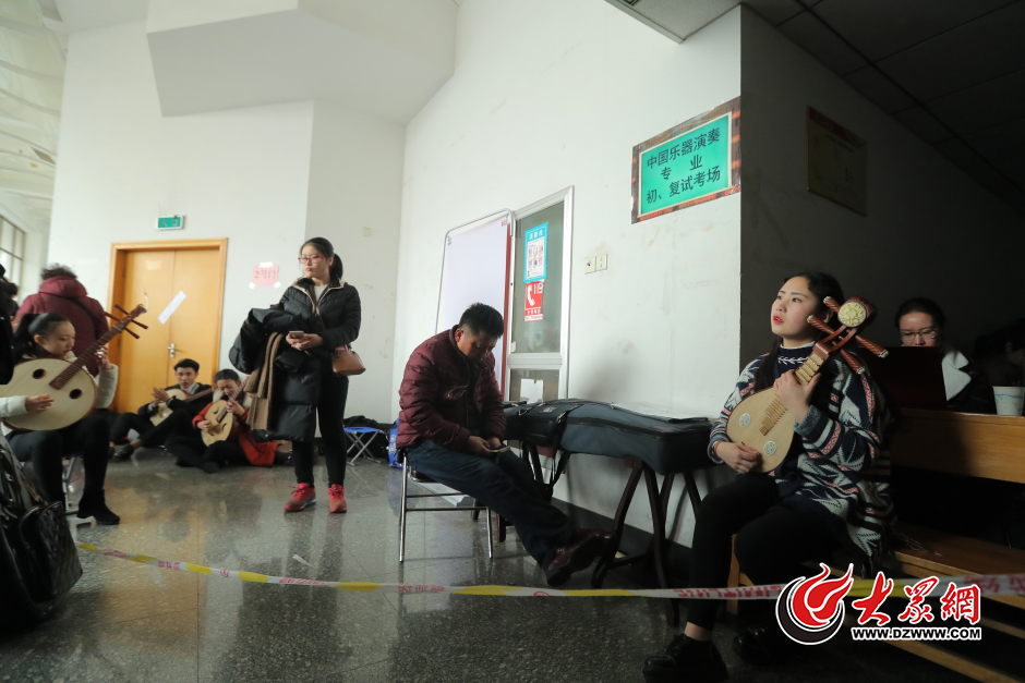 2月14日,2017藝考正在火熱進行著,也吸引了數(shù)以百萬的“追夢人”。山東濟南,在山東藝術(shù)學院音樂類藝考的侯考區(qū)內(nèi),因為沒有地方練習,不少考生就坐在考場外狹小的走廊里,忙著進行最后的考前準備,地上的灰塵沾滿了她們時尚的服裝。大眾網(wǎng)記者 王長坤 孫杰 攝