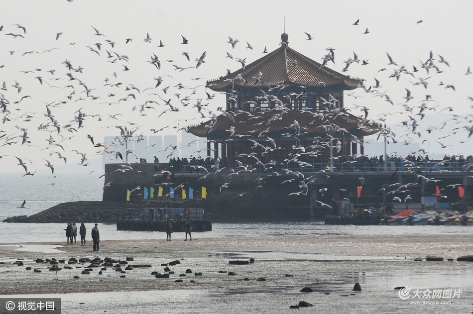 2017年2月14日,農(nóng)歷十八逢天文大潮退潮,在山東省青島市棧橋景區(qū)越冬的近萬只紅嘴鷗起舞春光日暖,鳥浪如潮,展現(xiàn)一幅幅初春的生態(tài)畫卷美醉游人。