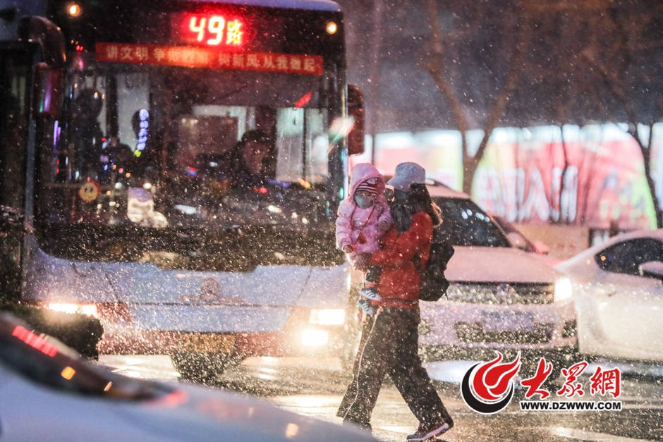 2月21日晚,山東濟南迎來今春首場降雪,街頭道路和建筑被大雪覆蓋,市民在飛舞的大雪中冒雪前行。當日,省氣象臺下午3點發布暴雪黃色、道路結冰橙色預警信號并繼續發布寒潮藍色預警信號。大眾網記者 王長坤 攝