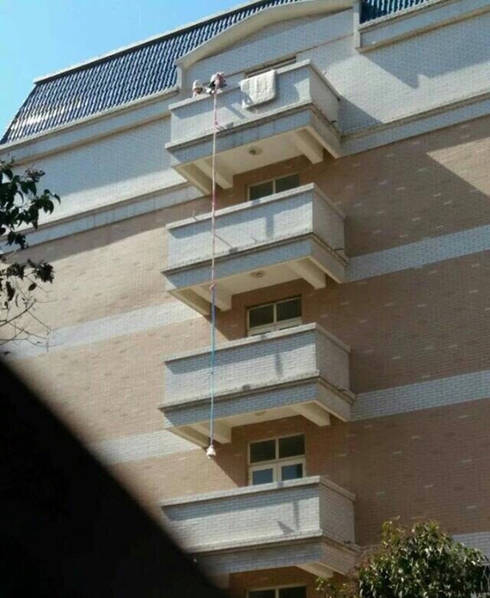 2017年3月2日,在河南工業大學一女生樓出現了這么一幕:兩名女生從6樓垂下長長的“繩索”把外賣大媽送來的外賣小心翼翼吊上來。仔細一看,這條“繩索”不簡單,是用近10條床單、被單拼接而成。有網友稱:為了省下爬樓的力氣,真是費盡了心血啊。來源:遼沈晚報