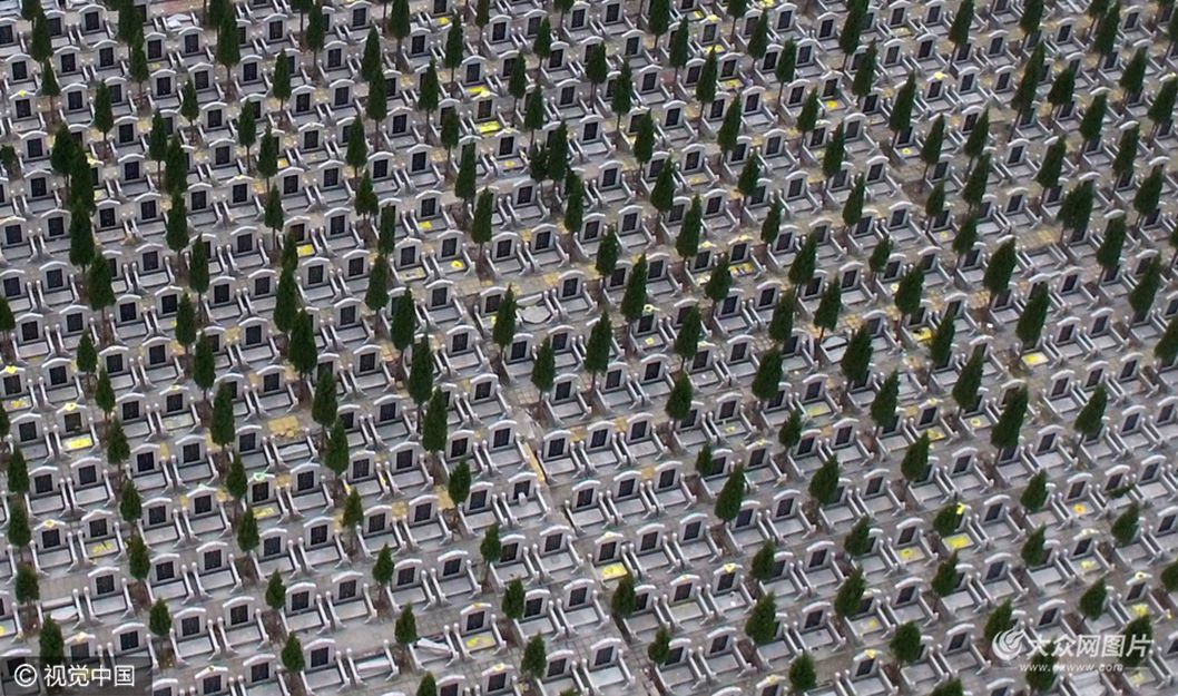 3月30日,清明節將至,航拍濟南最大陵園墓地玉函山公墓,場面十分壯觀。