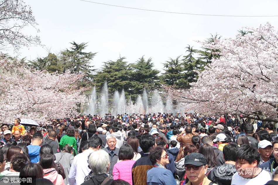 2017年4月9日,人們在青島中山公園賞櫻花。近日春光明媚,青島中山公園近2000株櫻花競相怒放燦若云霞,每天吸引數萬市民和游人游園賞櫻享受春光。據中山公園管理處介紹,今年中山公園單櫻最佳觀賞期為4月8日至15日,預計18日進入落花期。單櫻落幕雙櫻開,“五一”前后,將是欣賞雙櫻的最佳時期,雙櫻開放期將一直持續到5月上旬。