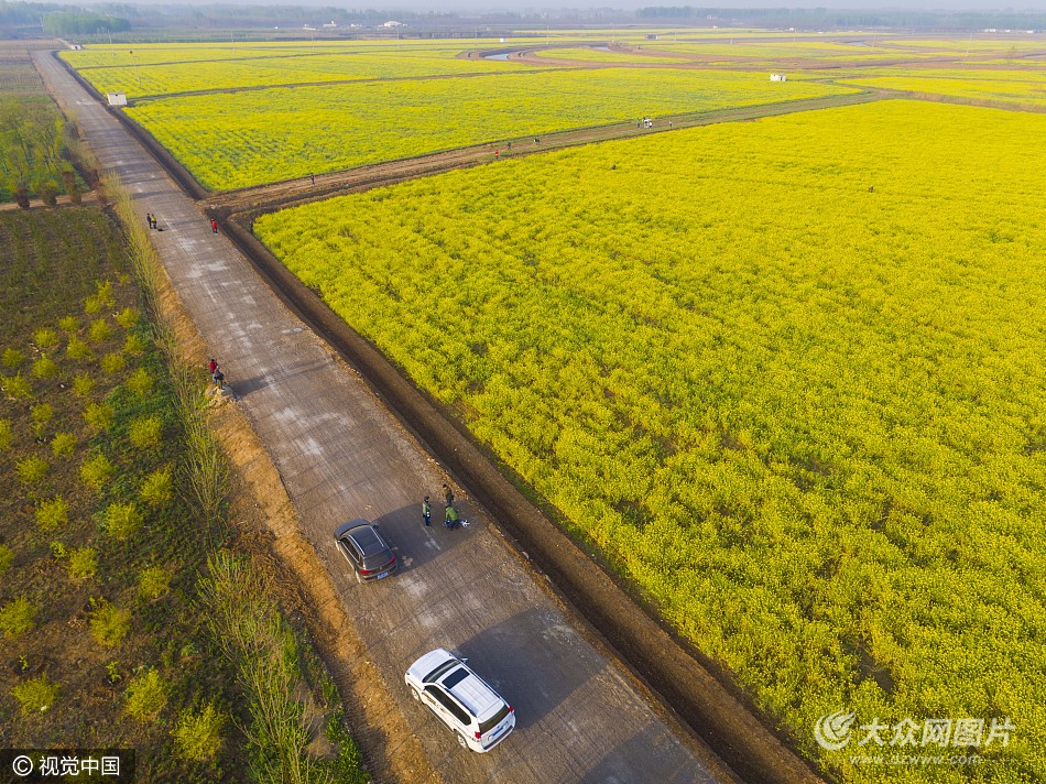 2017年4月12日,山東濟南市西部新城湖水清澈、綠草搖曳,重現“濕地之城”景觀。航拍春色晨光中的濟西濕地公園,滿目翠綠,湖波蕩舟,百畝油菜花盛開飄香,使人心曠神怡,陶醉其中。