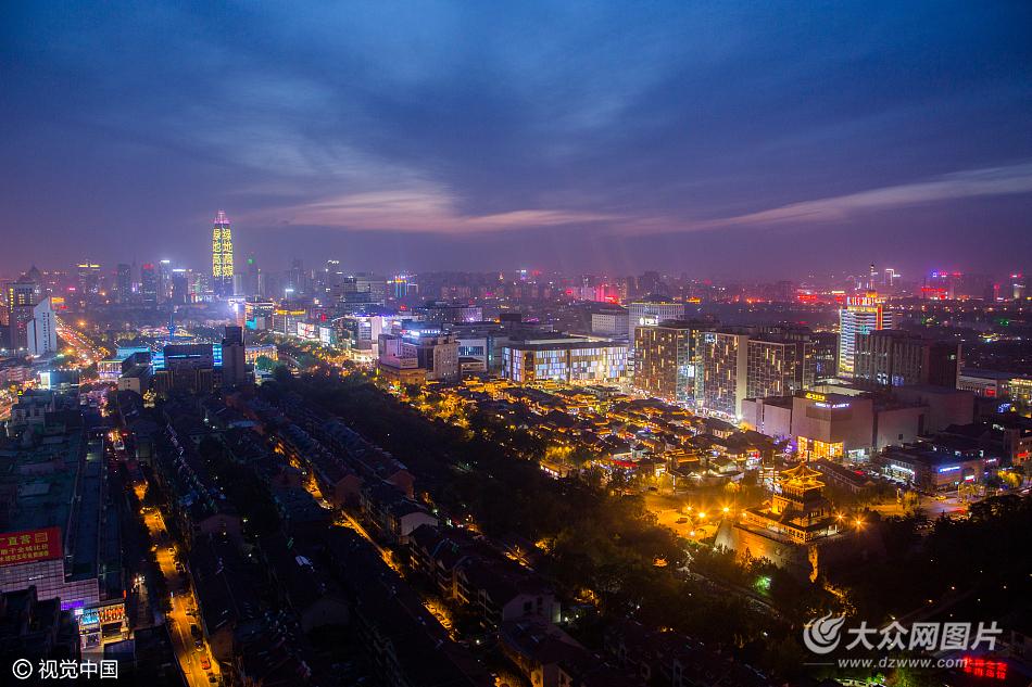 2017年4月24日傍晚,濟南西邊的天空出現一道神奇的亮光,日落后,天空漸漸變得絢麗多彩,繁華的寬厚里和熱鬧的泉城廣場,在藍天和夕陽的映襯下美得像幅畫。此時的濟南正披上夜色的外衣,華麗變身。