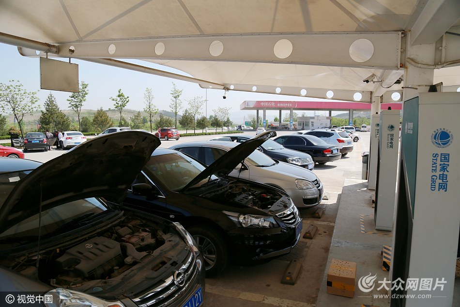 2017年5月1日,濟南,山東濟南高速公路章丘服務站已引入新能源充電樁與專用充電車位,方便新能源車輛充電。