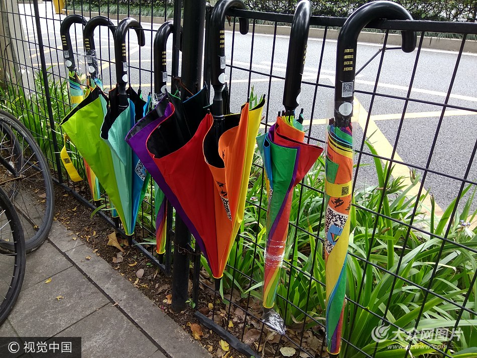 記者在深圳北大醫院附近街頭邂逅了幾把 "e 傘 "。簡單來說,e 傘的租賃方式和共享單車中 ofo 差不多,在傘柄上外加了一把智能鎖。市民要想使用 "e 傘 ",掃碼下載 APP 注冊,完成押金和租金的繳納即可。你其實可以理解鎖是和 ofo 差不多一樣的鎖,將單車換成了傘。