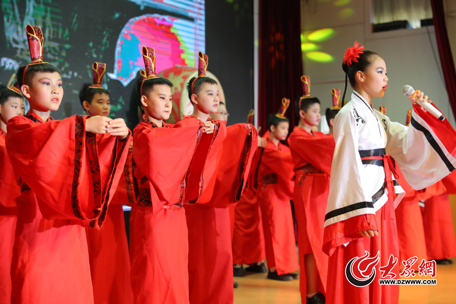 6月1日,山東師大附小一百多名小學生身著傳統漢服,表演歌舞《夢回漢唐》,在悠揚的樂曲中感悟中華傳統文化的精髓。當日,山東師大附小校本部舉行六一節慶祝活動,節目大多是傳統文化節目,讓在場師生們再次品味中國傳統文化的魅力。大眾網記者 王長坤 攝