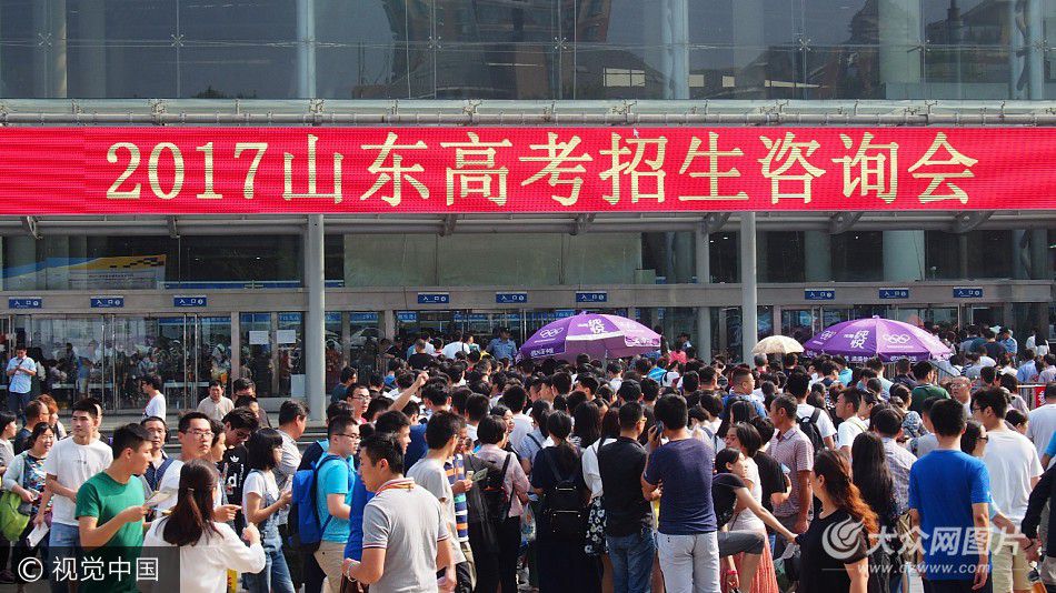 2017年6月25日,2017年山東省高校招生咨詢會在濟南在舜耕會展中心舉行。來自全國各地的數百所高校前來召集優秀考生,吸引了數以萬計的考生和他們的家長,現場氣氛極為熱烈。