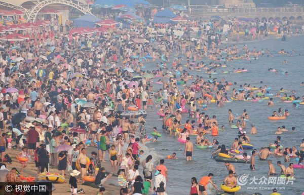"入伏"進入高溫模式 青島數萬游客"下餃子"避暑