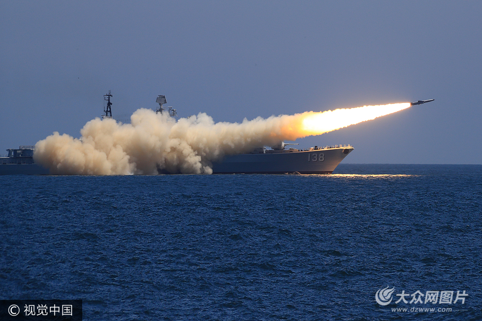 2017年8月7日,海軍在黃海、渤海相關海空域組織了實兵實彈對抗演習,最大限度檢驗體系作戰能力、戰法訓法、武器裝備效能,共實射各型導彈數十枚。此次演習是軍隊規模結構和力量編成改革調整后,海軍首次組織在黃海、渤海兩個方向同時實施的大型實兵實彈演習,是根據年度訓練計劃做出的例行性安排。