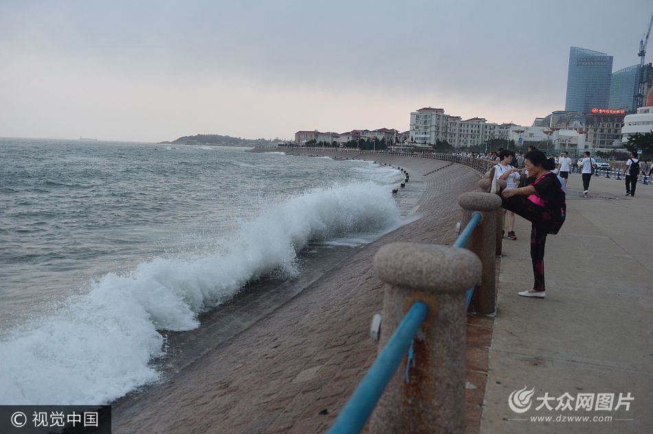 2017年8月23日,受天文大潮影響,山東省青島市前海岸邊出現數米高大浪,愛好游泳的大叔大媽海中“弄潮”炫技,每次靠岸都會出現驚險過程,讓圍觀的游客為之緊張捏汗。
