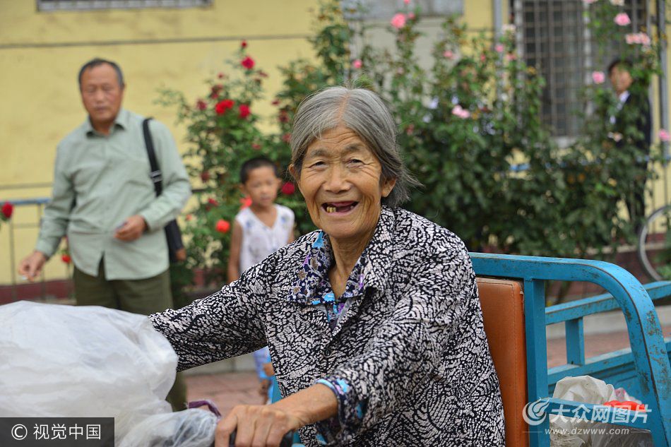 2017年8月29日,在山東茌平縣賈寨鎮,70歲的任大媽在賣鮮魚、蝦。今年70歲的任大媽是茌平縣賈寨鎮梅莊村農民,與老伴生活在馬頰河河畔,多年前從事捕魚,老人幾乎每天都有收獲,將撈到的小魚、小蝦,騎著電動車在街上叫賣生意很是紅火。