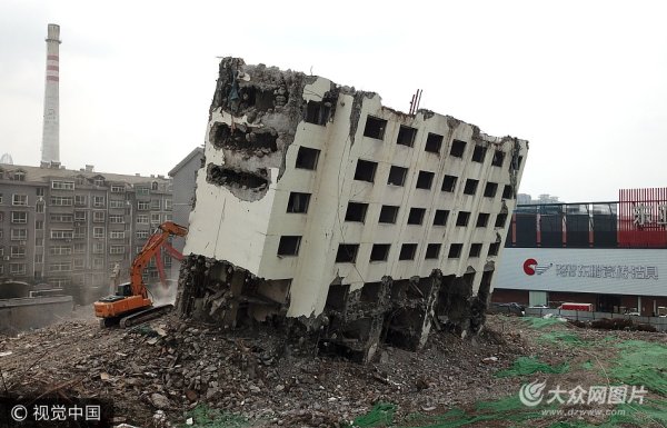 濟南一酒店拆除成“樓堅強” 傾斜30°仍不倒塌