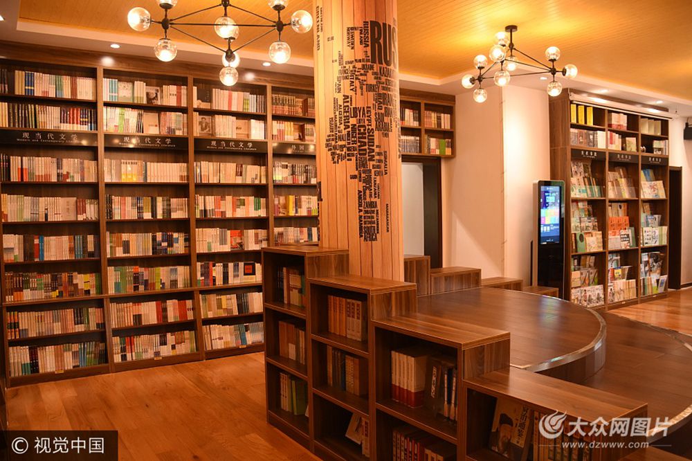 2017年10月16日,一家具有現代設計感裝修風格的“高顏值”書店落戶山東聊城大學東校區,該書店四周湖水環繞,環境優雅,書店內精致小巧的吊燈,米色舒適的凳子,巨大的落地窗,搭配出了“文藝范”。