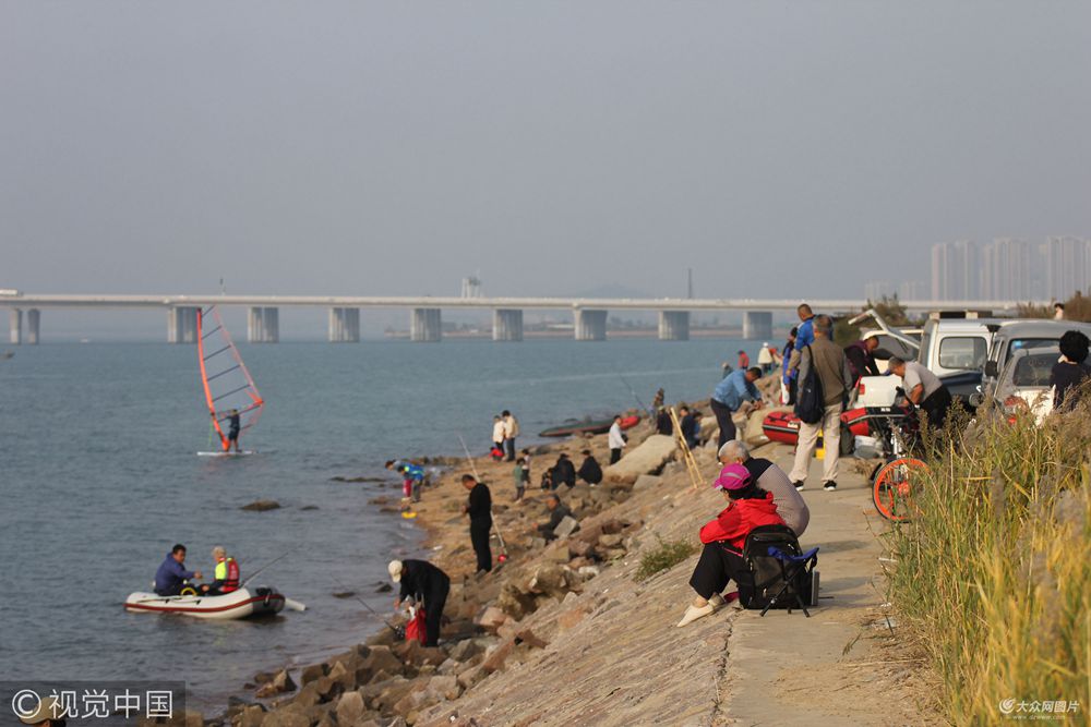 2017年10月21日,市民在青島膠州灣畔休閑度周末。當(dāng)日是周六,許多市民來(lái)到膠州灣畔游玩,有人開著房車來(lái)釣魚,帶著孩子來(lái)趕海,或者親朋好友同事帶齊各種美食美酒前來(lái)燒烤聚餐喝酒,樂(lè)趣無(wú)窮。趕海垂釣各種海鮮收獲頗豐,海鱸魚八帶海蠣子螃蟹蝦虎等饞得人流口水。