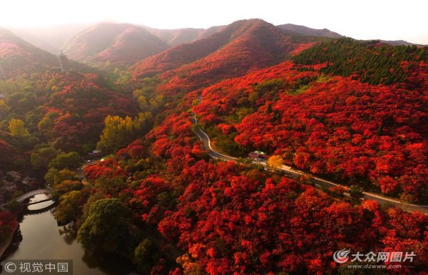 濟南4000畝紅葉盛開 紅透山谷半邊天