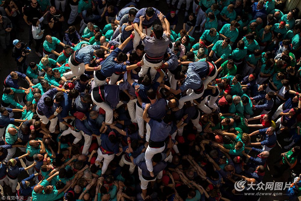 當地時間2017年11月1日,西班牙巴塞羅那賓納戴斯鎮,民眾參加疊羅漢活動,慶祝萬圣節。