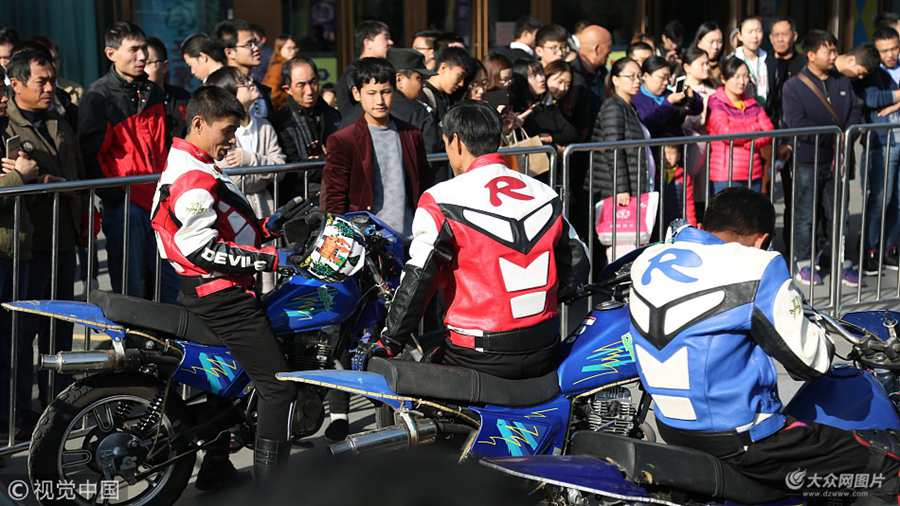 2017年11月11日,在濟(jì)南高新區(qū)街頭,四名男子駕駛摩托車關(guān)在鐵籠里瘋狂倒轉(zhuǎn),吸引眾多市民前來(lái)駐足觀望。