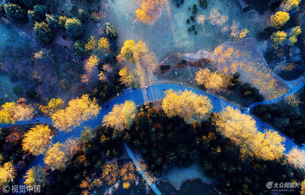 濟南:寒潮來襲降至冰點 滿園金黃如夢如幻