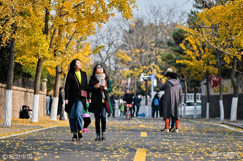 2017年11月21日,在山東省青島市八大關、中山公園景區,初冬的園林仍停留在燦爛的童話世界,吸引了不少游客徜徉在秋冬之間,接受落葉的洗禮。