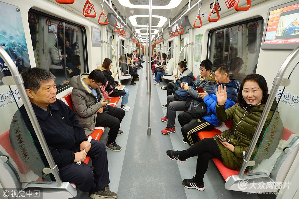 2017年12月10日,青島地鐵2號線東段開通試運營,極大方便了沿海線觀光購物的市民,圖為大批市民開始乘坐2號線出行。