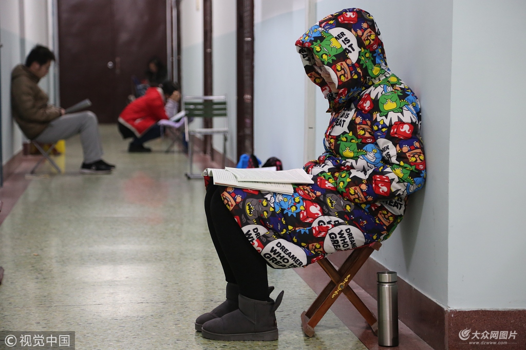 017年12月18日,在山東濟南山東師范大學千佛山校區,考研族在自習室道樓里備戰考研。距離考試還有4天左右的時間,考研黨并非放松自己,而是每天長達15小時的備考復習,清晨5時許,在圖書館蹲點,晚上10時許,任然挑燈夜戰,為的就是追逐自己的夢想。