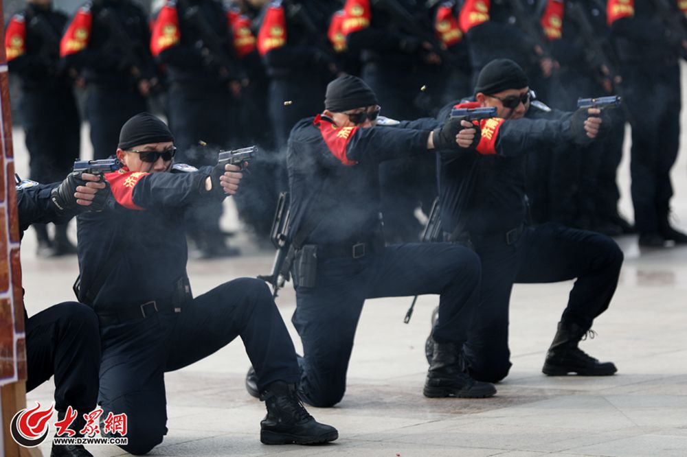 大眾網濟南1月19日訊(記者 亓翔)今天上午,濟南特警力量展示暨2018年戰訓啟動儀式在泉城廣場舉行。本次活動展出了特警支隊先進的設備車輛及各類武器、警械;還進行了了應急棍術、基礎戰術動作、警棍盾牌術、反恐處突演練、擒敵拳、武術、搜排爆模擬演練、無人機實戰應用等8個實戰技能演練。全面展示了全市特警隊伍建設、裝備保障和處置各類案事件、守護泉城安寧的實戰技能水平。
