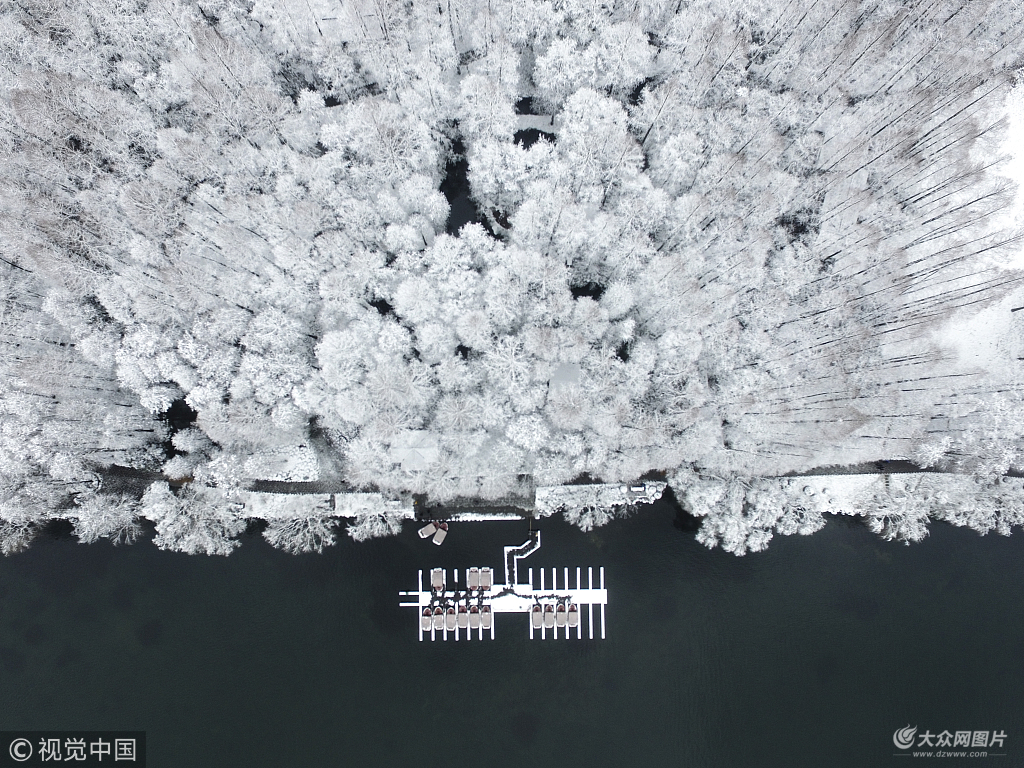 2018年1月26日,杭州,航拍雪后西湖,美不勝收。