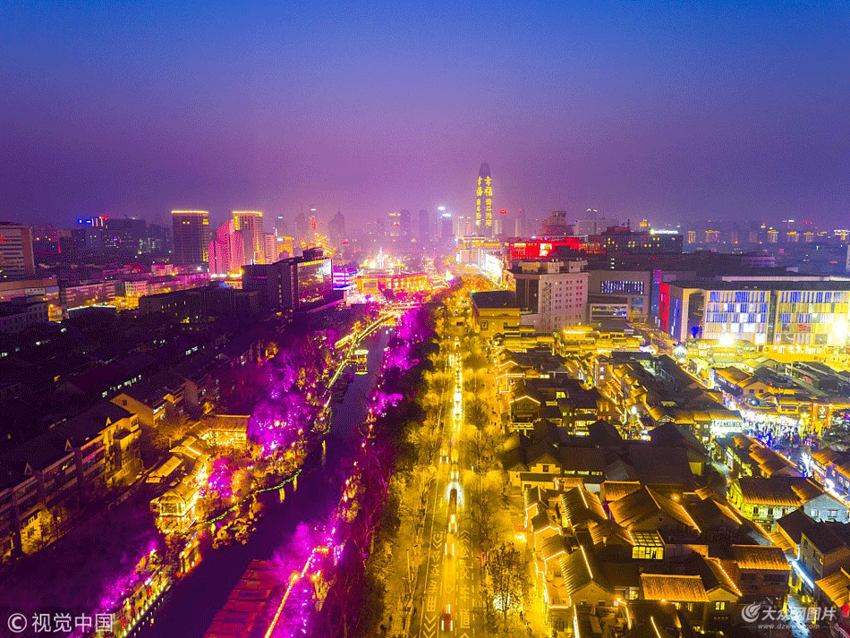 2018年2月16日,濟南,農歷狗年春節的大年初一,落日余暉下的護城河、黑虎泉、解放閣色彩斑斕,美不勝收。