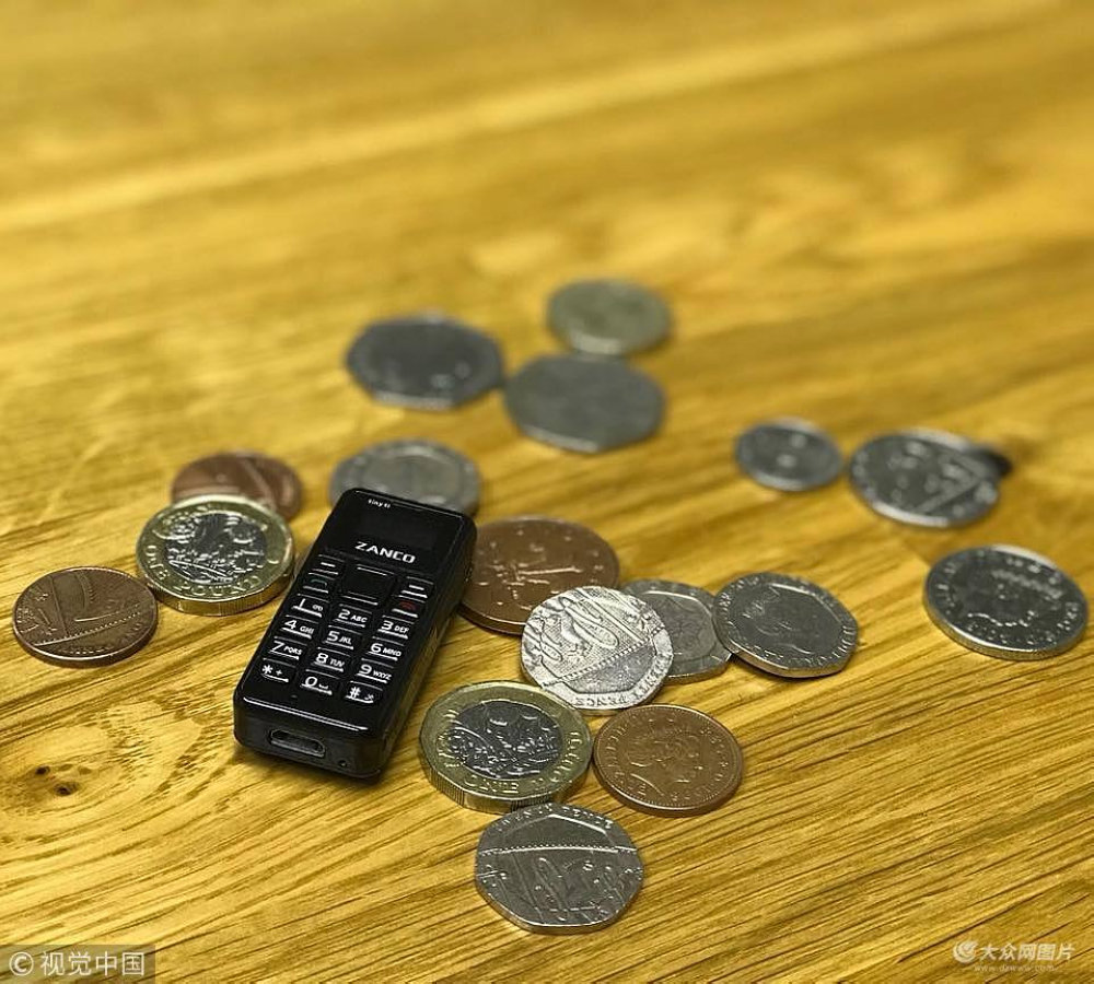 當地時間2018年1月3日,作為世界上最小的工作電話,Zanco tiny t1的長度僅為46.7mm,屏幕長12.5mm,比硬幣還輕,可輕松塞入牛仔褲小表兜里。