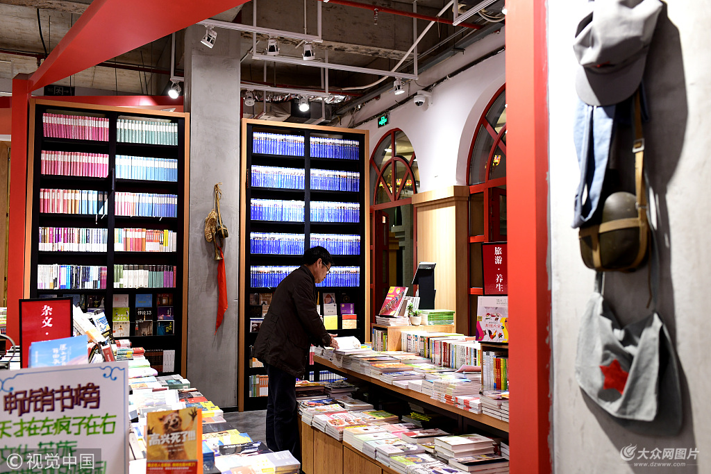 2018年4月18日,貴州省遵義市楊柳街有一家24小時書店,書店的立柱是紅色火炬造型、墻壁上有毛主席詩詞《長征》,馬燈、沖鋒號、蓑衣、斗篷、草鞋、紅軍帽、水壺、刺刀、電話機等老舊物件隨處可見,讓讀者在書香中感悟長征精神,學習紅色文化。