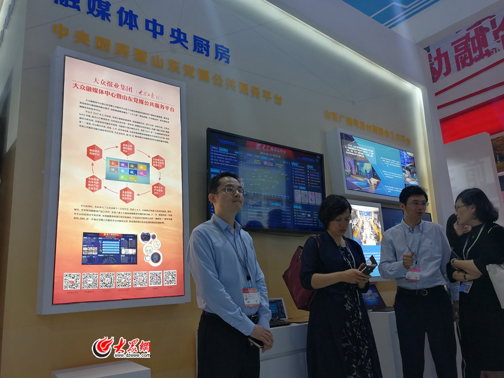 在山東館入口顯著位置,文化產業新業態版塊重點展示了以大眾報業集團(大眾日報社)中央廚房暨山東黨媒公共服務平臺為代表的媒體融合最新成果。