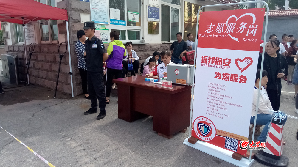 大眾網6月12日訊 濟南中考期間,山東振邦保安高新分公司做好安保工作,設立志愿服務崗,成立青年志愿者服務隊,給考生準備2B鉛筆,備有外用藥、防暑物品,并配備車輛以應對緊急事件,全方面為考生、家長提供服務。(大眾網記者 李兆輝)