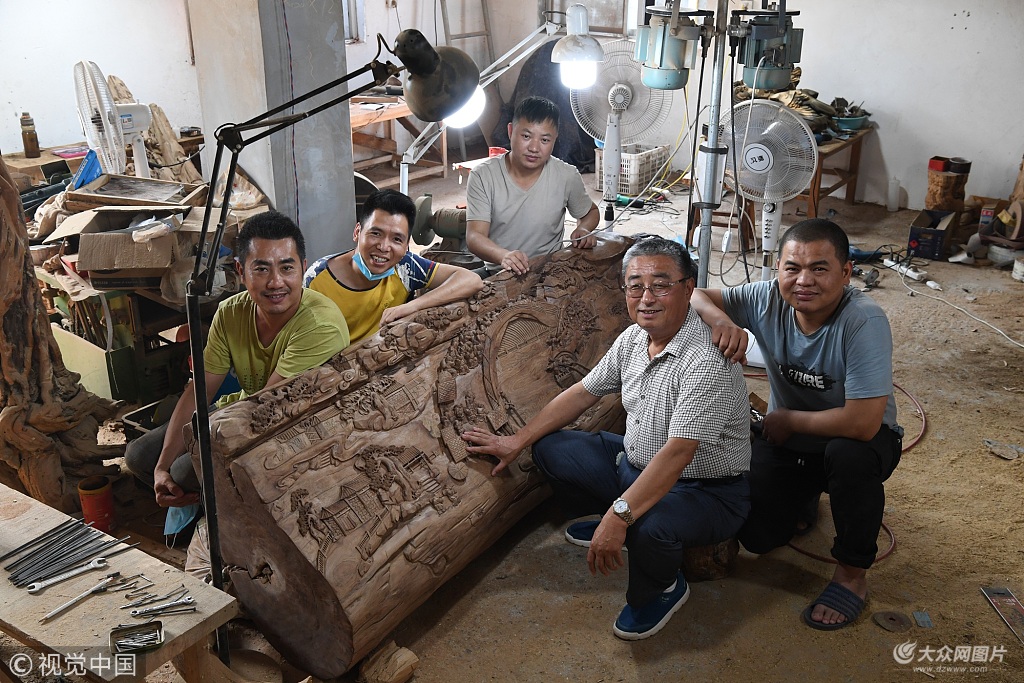 58歲的濟南老人鄒金勝酷愛“木雕藝術”,在城南山區(qū)柳埠鎮(zhèn)開起了一家屬于自己的木雕加工廠。最近,鄒金勝和他的團隊突發(fā)奇想,共同把中國著名的《清明上河圖》雕刻進了木雕作品中。