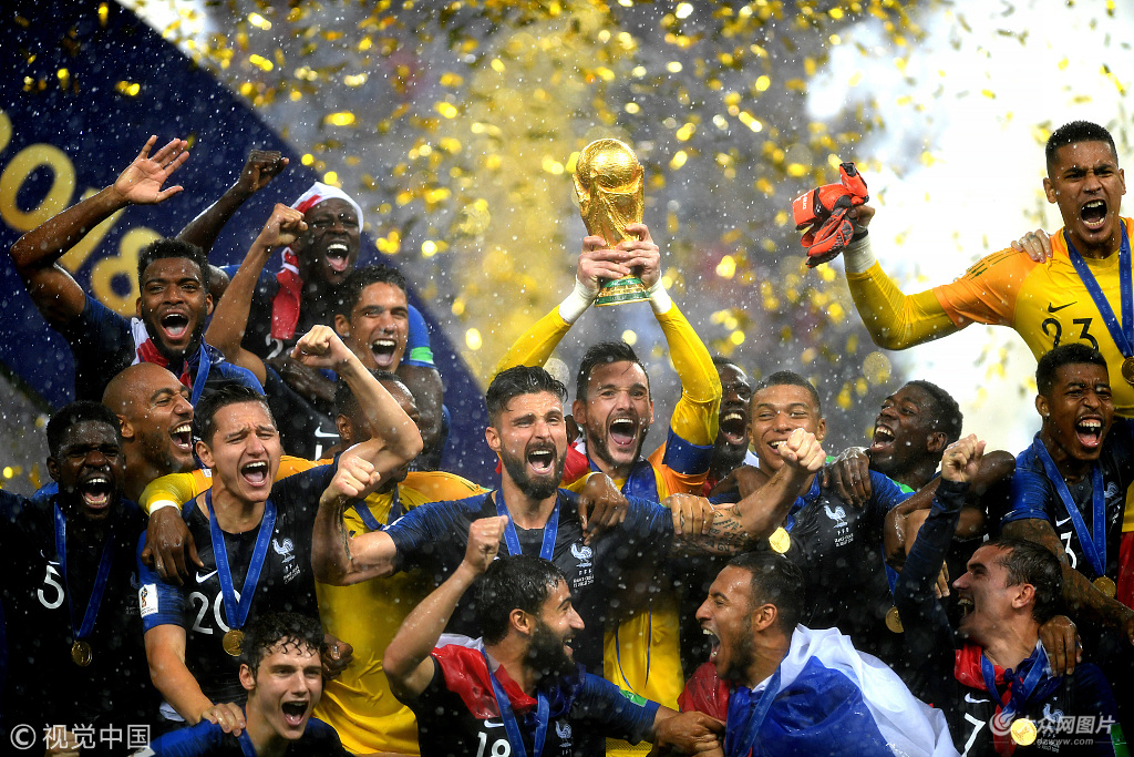 北京時間7月15日晚23點,萬眾矚目的2018年世界杯決賽在莫斯科盧日尼基球場展開角逐,由法國對陣克羅地亞。上半場曼朱基奇自擺烏龍,佩里西奇扳平,隨法國隊通過VAR獲得點球,格列茲曼一蹴而就,下半場博格巴和姆巴佩擴大比分,洛里失誤送禮曼朱基奇破門。最終法國4-2戰(zhàn)勝克羅地亞,法國時隔20年再次奪得世界杯冠軍,克羅地亞也超越20年前的季軍,獲得隊史世界杯最佳戰(zhàn)績。