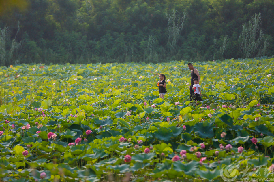 聊城江北水城旅游度假區南湖濕地公園,成片的蓮葉與盛開的荷花 大眾網記者 畢勝