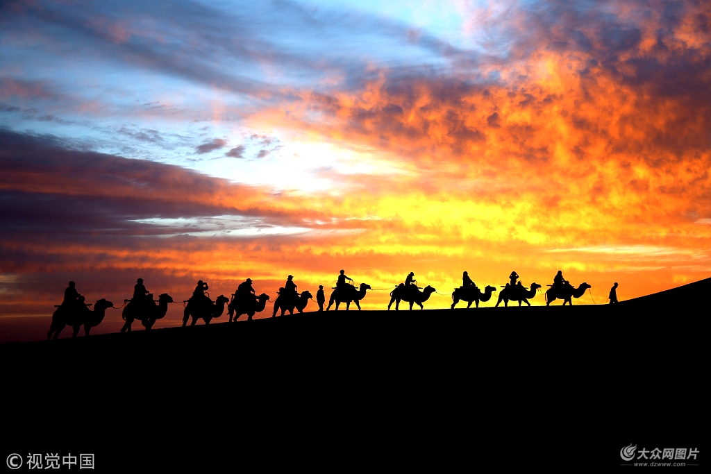 2018年8月19日,游客在甘肅省敦煌市鳴沙山月牙泉景區(qū)欣賞大漠風(fēng)光。圖片作者:張曉亮/視覺中國