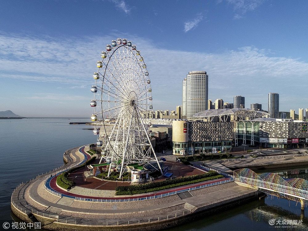 2018年9月5日,位于黃海之濱唐島灣畔的青島西海岸新區(qū)地標(biāo)建筑“琴島之眼”,在晨光中靚麗奪目。