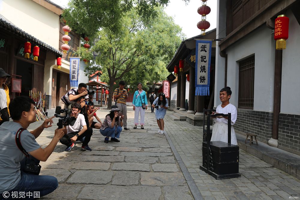 山東聊城市陽谷縣是武松打虎成名之地,除了打虎,武松還在陽谷縣衙任職過都頭。如今在陽谷獅子樓旅游風景區復原了系列水滸仿古建筑,其中景點內最熱鬧的要數武記燒餅鋪,燒餅鋪內李軍縣扮演的武大郎形神兼備走到此處猶如穿越到了大宋。