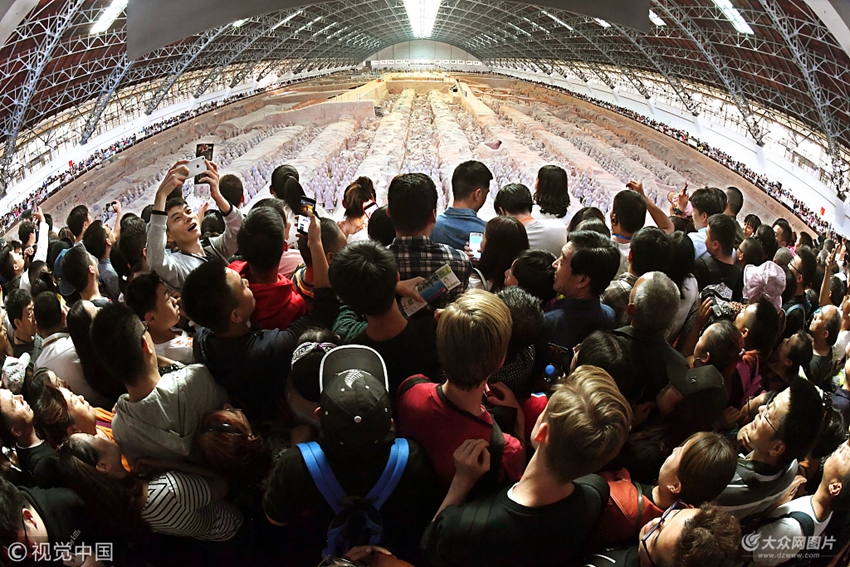 2018年10月3日,陜西西安,臨潼區的兵馬俑景區熱度不減,一再“爆棚”。