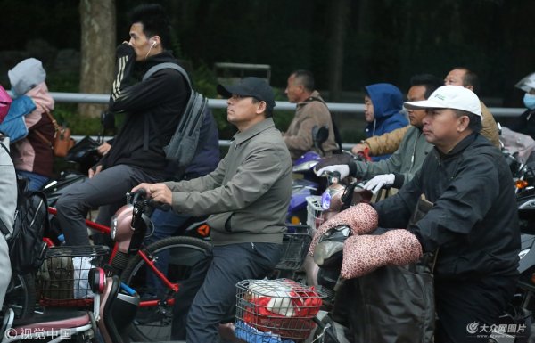 秋雨過后濟南降溫 市民“全副武裝”追趕上班路