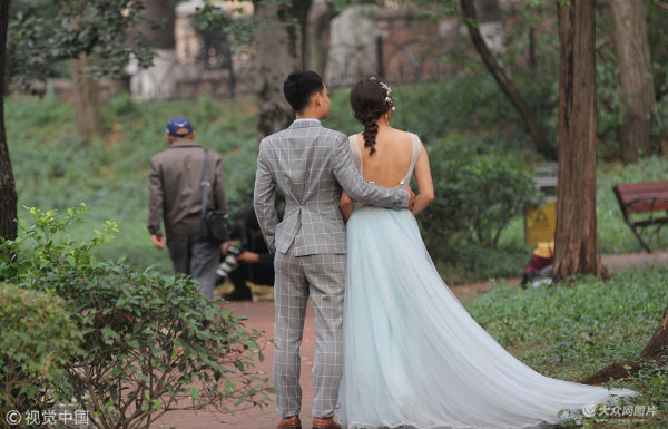 又到金秋婚紗季 青島八大關吸引眾多新人拍攝婚紗照
