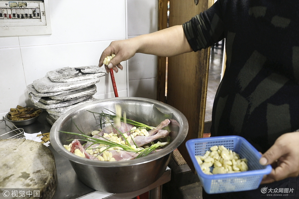 2018年11月15日,長沙,要想蒜香入味原料不能省,彭炯對大蒜的用量毫不吝嗇。