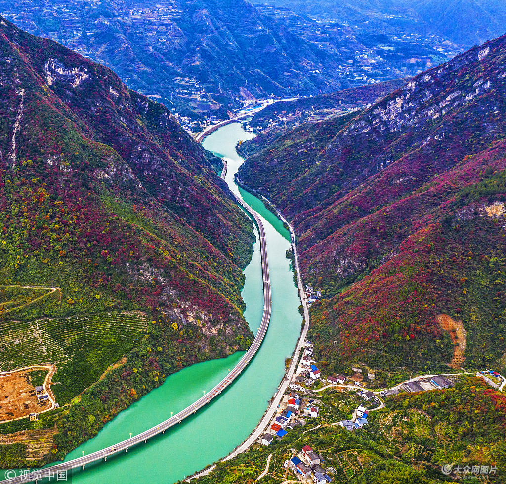 2018年11月19日,湖北省宜昌市興山縣被譽為“最美水上公路”的古昭公路秋色宜人,峽谷兩岸紅葉遍山,層林盡染。