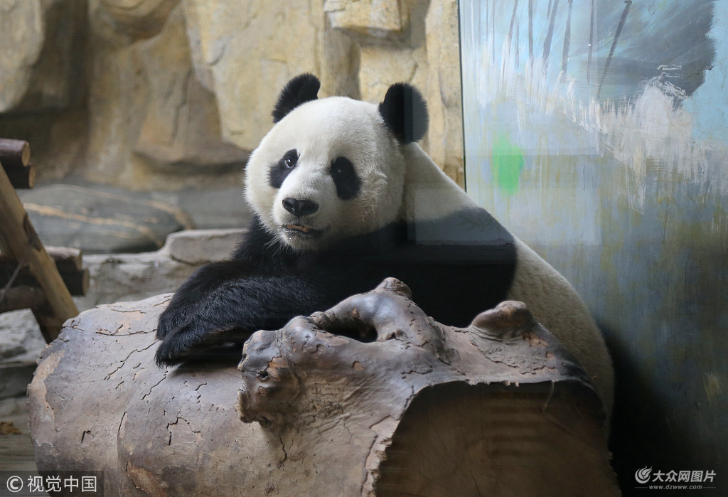 2018年12月4日,濟(jì)南,大熊貓在動物園內(nèi)的熊貓館里悠閑自在,時而玩塑料管、時而玩球、時而賣萌,十分討人歡喜。