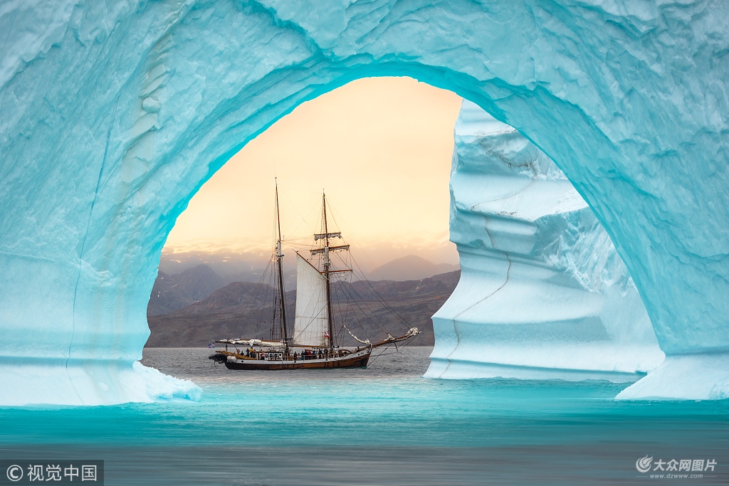 2018年12月4日訊,近日,一名攝影師在格陵蘭島捕捉到了一副風(fēng)景如畫的景象,一艘雙桅帆船精完美地嵌入了格陵蘭島沿岸一座巨大的水藍(lán)色冰山中間的拱門之中,看起來既精致又美妙。據(jù)悉,這名攝影師名叫詹姆斯拉什沃思(James Rushworth),來自英國(guó)。當(dāng)天,32歲的詹姆斯為了這張合影,冒著低至零下10攝氏度的氣溫在格陵蘭島的海上耐心地等待著,當(dāng)雙桅帆船正好位于冰山拱門中間,他按下了快門。照片中,長(zhǎng)108英尺(約33米)的雙桅帆船在300英尺(約91.5米)高的冰山襯托之下,顯得十分袖珍,令人不禁感嘆。對(duì)此,詹姆斯表示:“我們出海航行時(shí)恰巧看到了這些大冰山。拍照時(shí)我在那艘雙桅帆船的姊妹船上,跟著帆船剛好可以確定拍攝角度。我們十分小心,不能離得太近,怕冰山會(huì)突然倒塌,掀起巨大海浪。拍照前我注意力特別集中,拍完了我就坐在那兒欣賞冰山美景了,真的實(shí)在是太美了。”